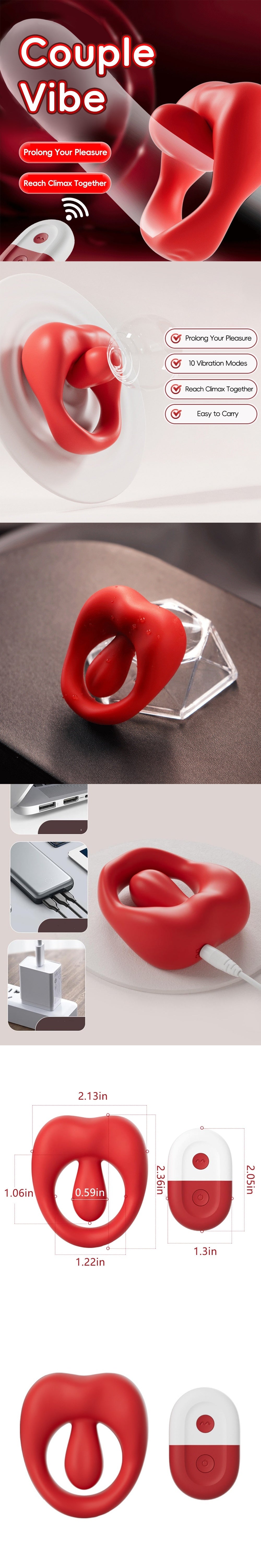 Featuring a wireless remote control, this ring allows for playful teasing and spontaneous surprises. Switch effortlessly through 10 powerful vibration modes — from soft, teasing pulses to deep, body-shaking waves. Whether you're exploring foreplay or chasing climax, every mode invites new sensations and shared excitement.
