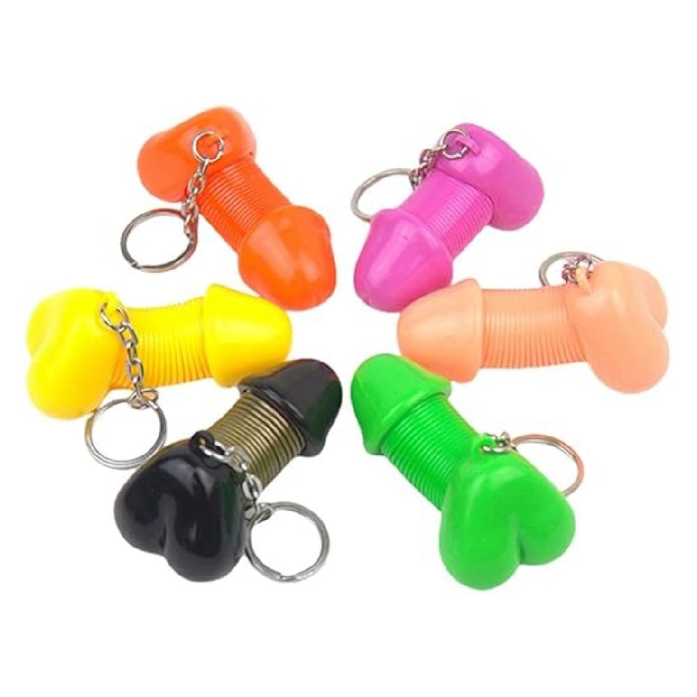 • Funny prank penis keychain with retractable spring design